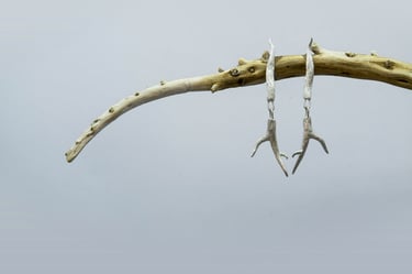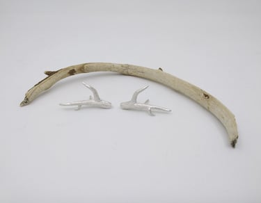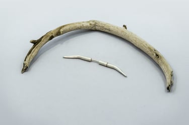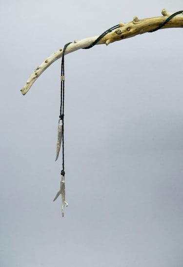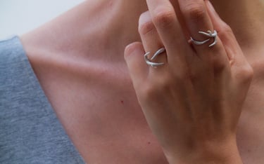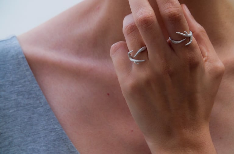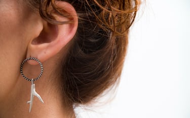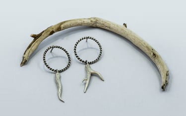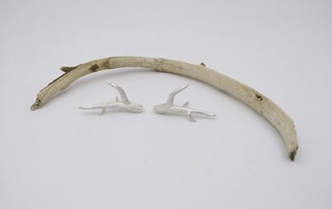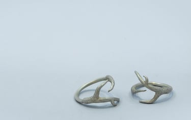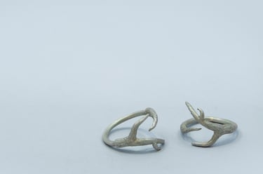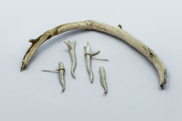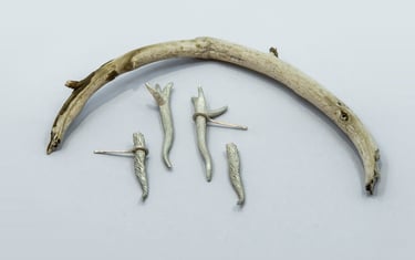 Son pequeñas ramas modeladas en cera y luego fundidas en plata, con textura como las ramas de los árboles que conforman el bosque de Laurisilva de Tenerife y otras islas de Canarias