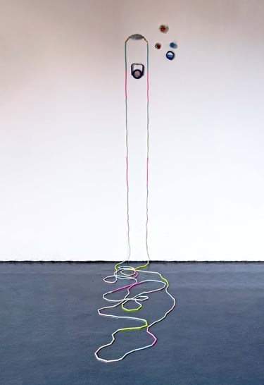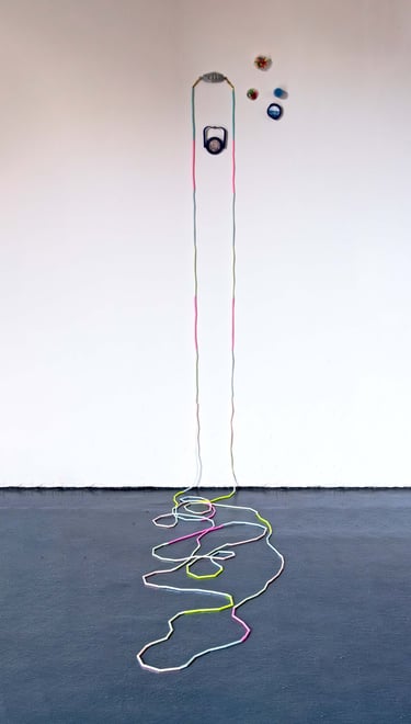En mi obra suelo utilizar elementos y materiales reutilizados dándole otro uso al habitual, me gusta investigar con diferentes materiales y ver las posibilidades a nivel formal.