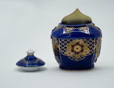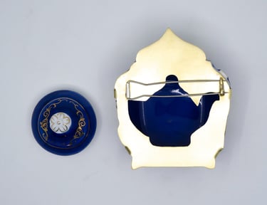Esta antigua tetera de porcelana se convirtió en un broche, corté la tetera por la mitad, le añadí una placa de latón por detrás con la silueta de la tetera y le hice el sistema de broche.