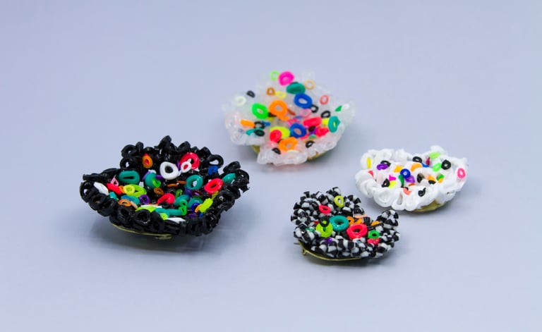 Varias piezas con materiales diversos como nylon, plásticos, porcelana