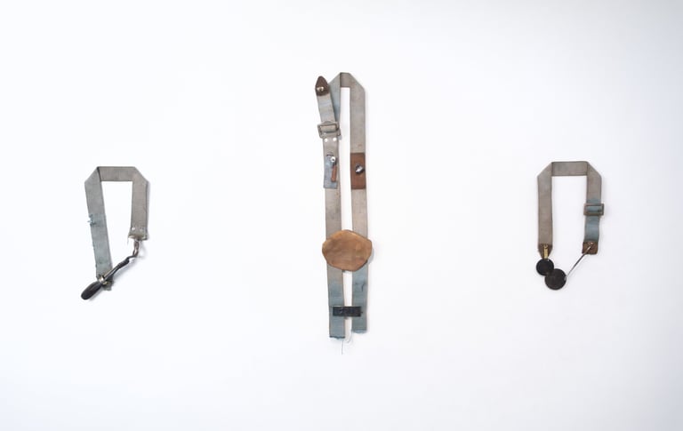La realidad se apoya linealmente en el suelo que nos sustenta; es el terreno narrativo de nuestros quehaceres diarios, testigo de historias compartidas, receptor y contenedor de nuestro legado, un imaginario particular al que estas piezas remiten. Mirar al suelo y recolectar, como una acción de espigueo contemporáneo, exporta y amplía tal rastro de objetos hacia la poesía visual, yuxtaponiendo dos tiempos generacionales, dos oficios, abriendo nuevas materialidades y dando sentido a las redes que nos conforman.
